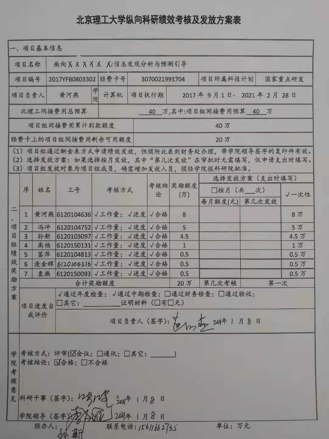 项目2017YFB0803302绩效发放公示